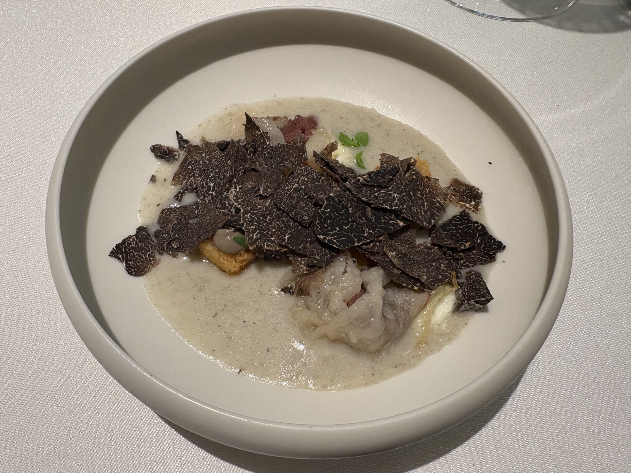 両シェフが一人一人白トリュフを削ってくれる。今まででトリュフで感じたことのない凄まじい香り。